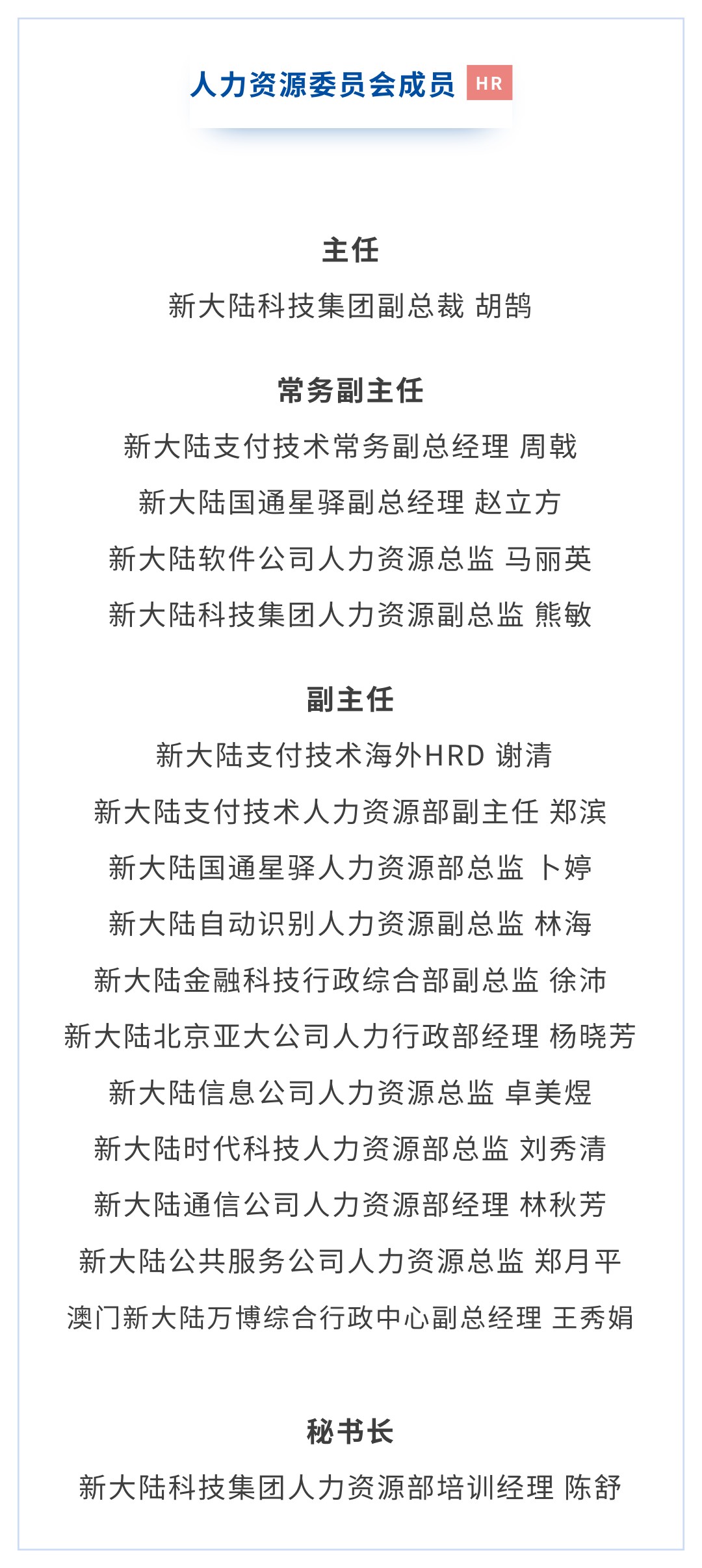 集團(tuán)人力資源委員會(huì)的成立,標(biāo)志新大陸將加快構(gòu)建規(guī)范化、專業(yè)化、數(shù)字化的人力資源管理體系,強(qiáng)化人才培養(yǎng)與梯隊(duì)建設(shè),提升整體競(jìng)爭(zhēng)力,為集團(tuán)戰(zhàn)略目標(biāo)落地提供強(qiáng)有力的支撐。